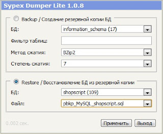 На помощь нам приходит отличная бесплатная утилита Sypex Dumper. Версия Light - вполне сгодится.
