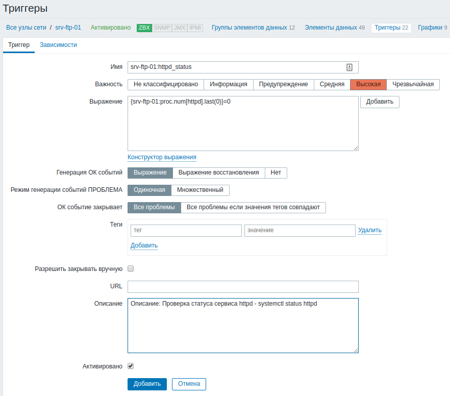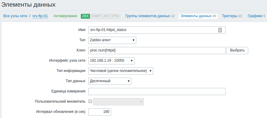 {srv-ftp-01:proc.num[httpd].last(0)}=0 - Описание: