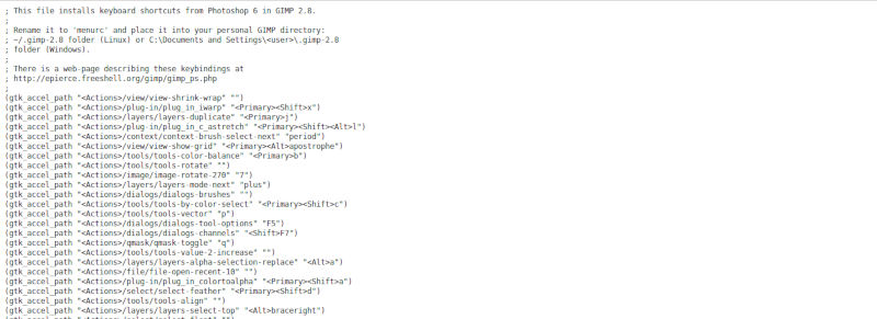 $ wget https://raw.githubusercontent.com/cems/etc/master/gimp/2.0/ps-menurc