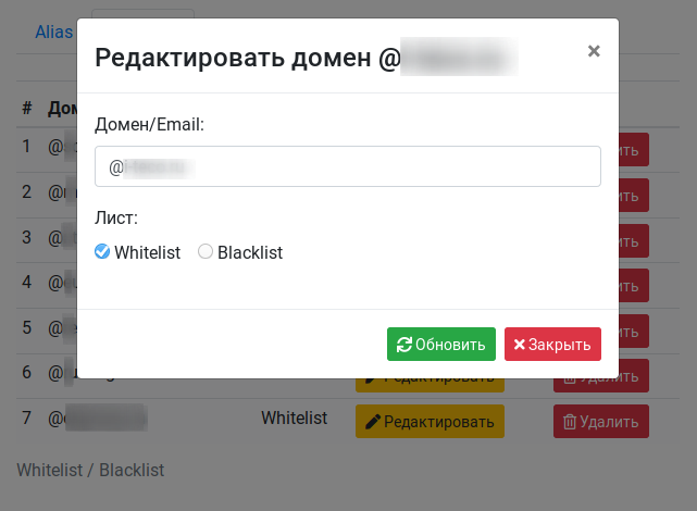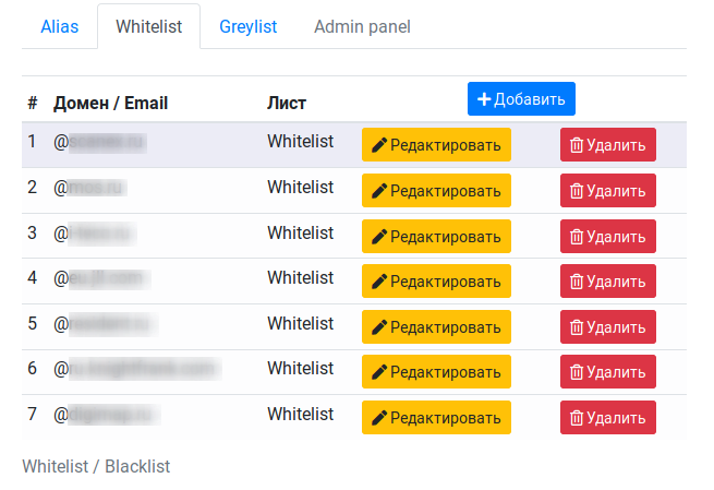 Мне не захотелось использовать phpMyAdmin для управления белым и черным списком, по-этому набросал свою админку.