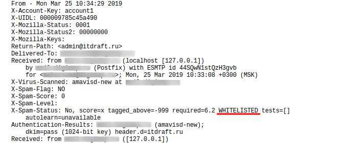 Исходник письма с отправителем из белого списка