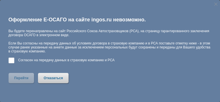 Ингосстрах не разрешил оформить е-ОСАГО через сайт
