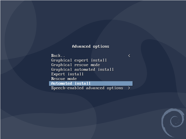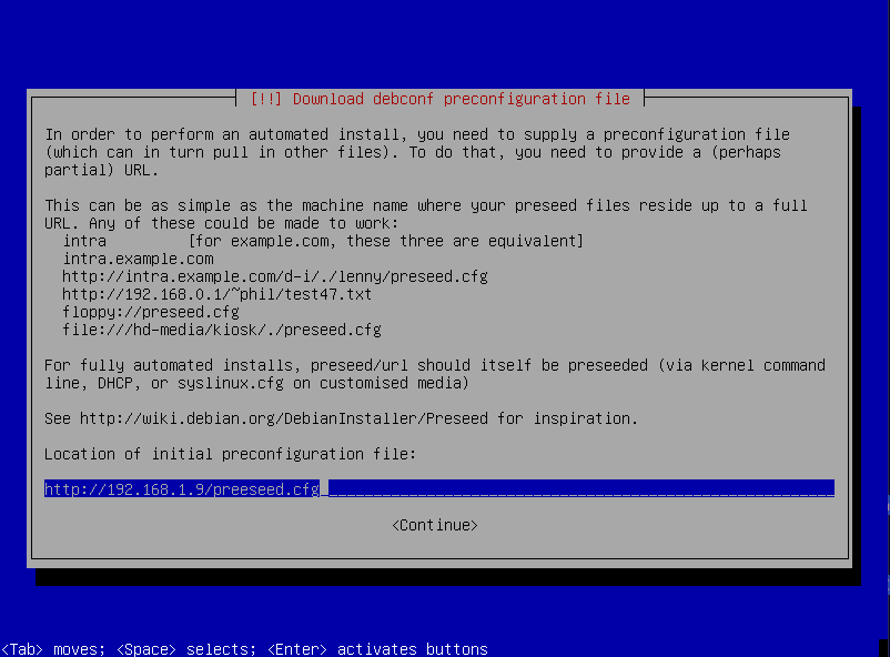 После подгрузки необходимых модулей прописываем url к файлу preseed.cfg