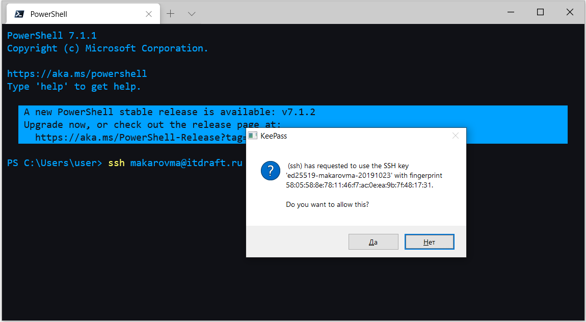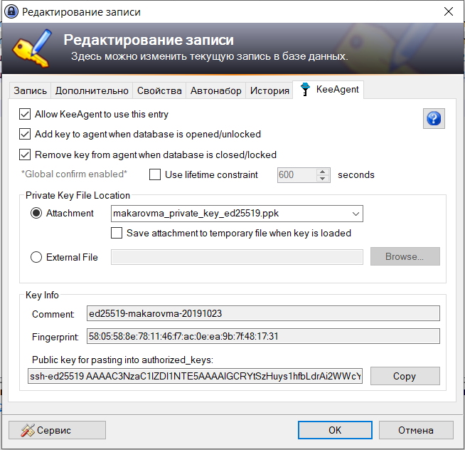Подключение из KeePass по SSH, используя SSH-ключ (сертификат), который хранится в KeePass