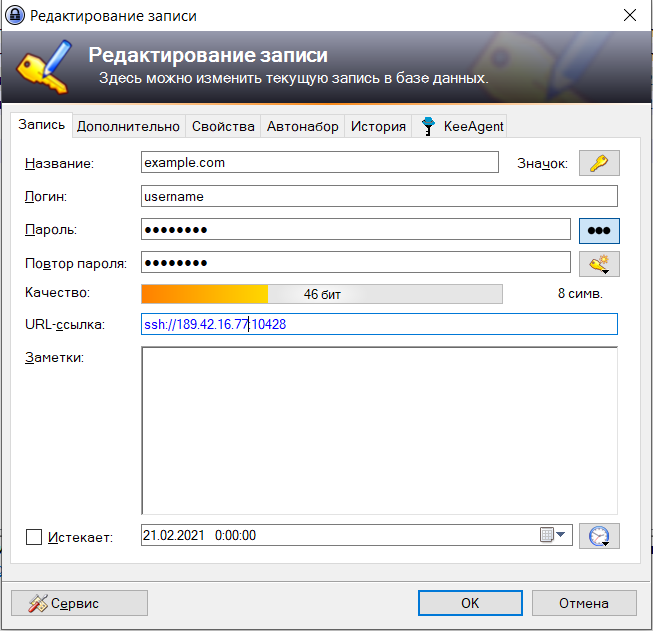 Подключение из KeePass по SSH без ввода IP, логина, пароля