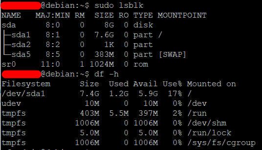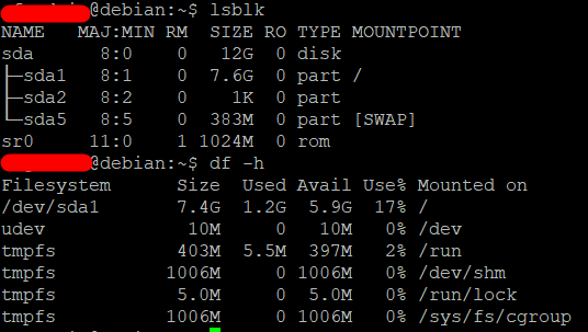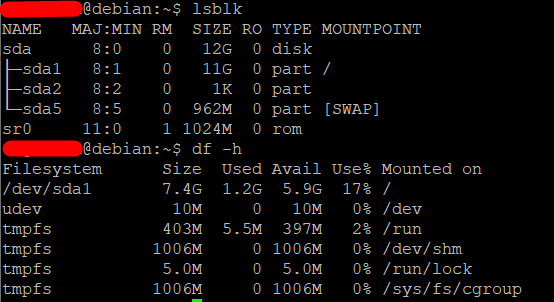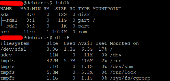 /dev/sda1 11G 1.2G 9.1G 12% /