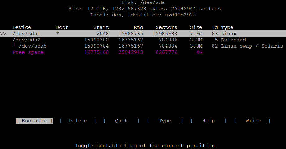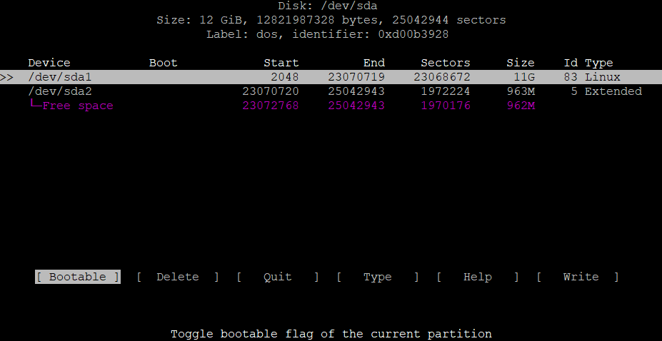 $ sudo fdisk /dev/sda