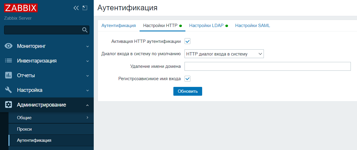 Переходим в раздел: Администрирование - Аутентификация - Настройки HTTP