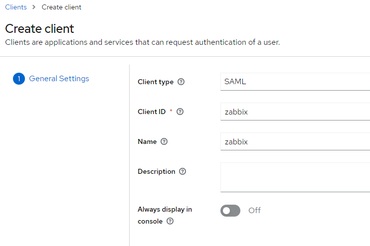 SP entity ID: zabbix # название нашего клиента в Keycloak