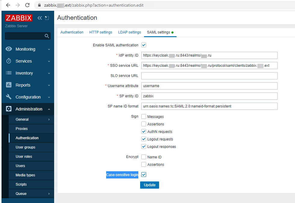 SSO service URL: https://keycloak.itdraft.ru:8443/realms/myrealm/protocol/saml/clients/zabbix.itdraft.ru # этот параметр сгенерировал keycloak (см. начало статьи)