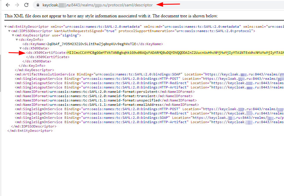 <ds:X509Certificate> ... </ds:X509Certificate>