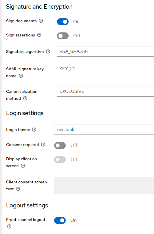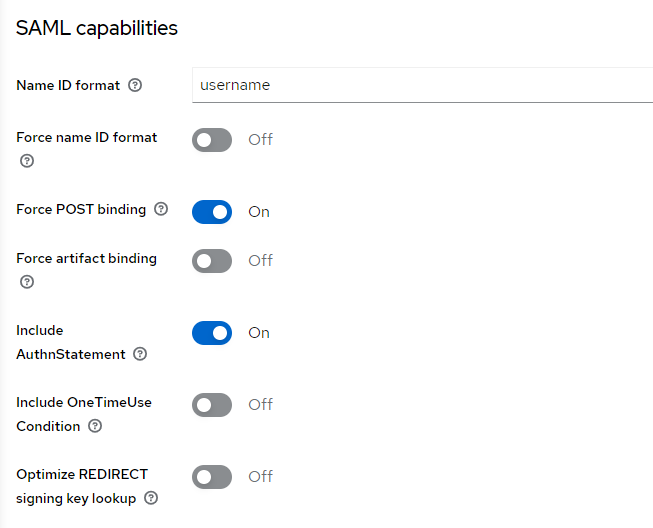 - Tab Advanced > Fine Grain SAML Endpoint Configuration