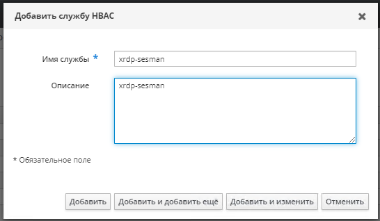 FreeIPA > Политика > Управление доступом на основе узла > Службы HBAC > Добавить