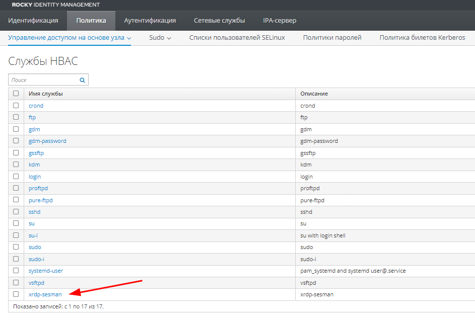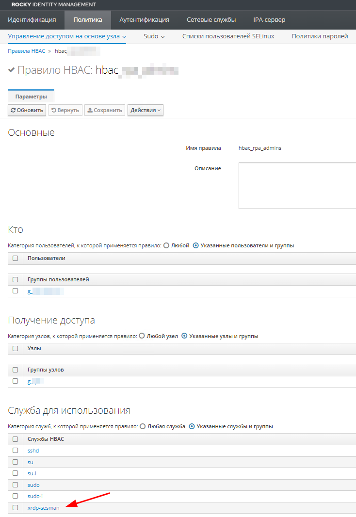 А дальше добавить службу xrdp-sesman в правило HBAC