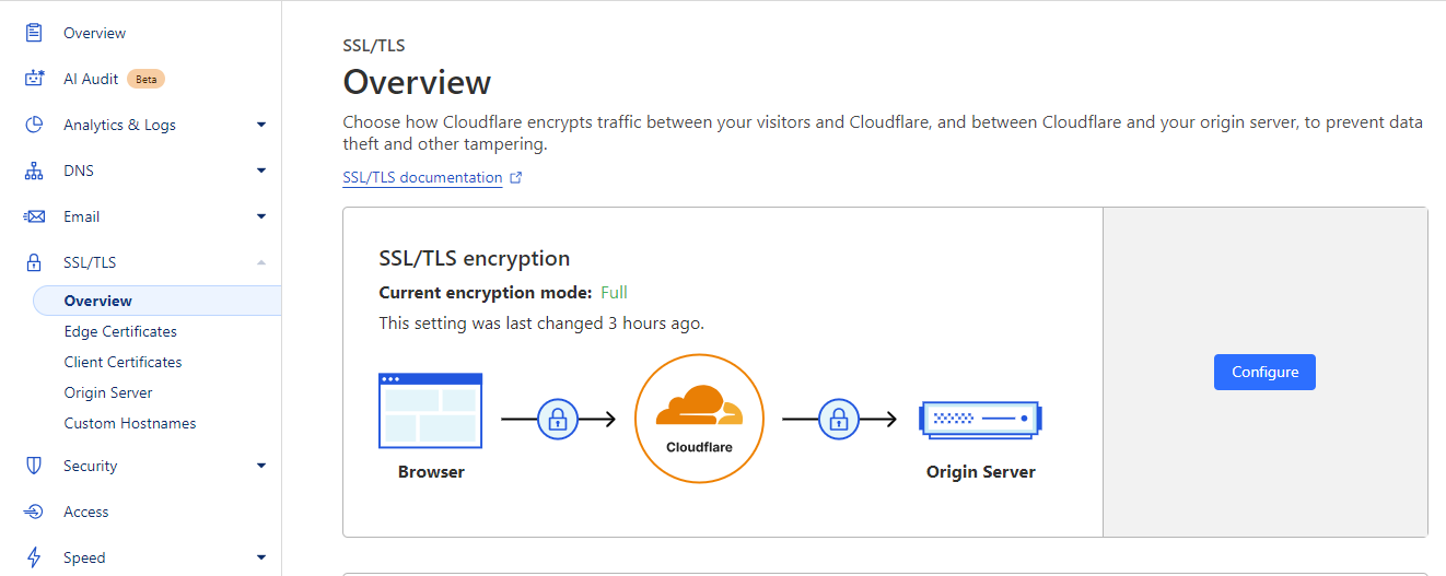 SSL/TL > Overview > SSL/TLS encryption > Configure