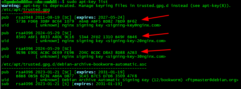 [Решено] Nginx: Key is stored in legacy trusted.gpg keyring (/etc/apt/trusted.gpg)